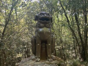 神社に向かって右に「吽形」。高さ98㎝ (小出公大 備前焼の狛犬 より)
