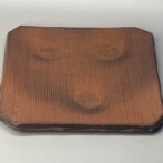 備前焼は表面に小さな凹凸があり、食品が皿肌に密着しないので取り易いといわれますが、この角皿は麻布で模様を取りその効果が増しています。