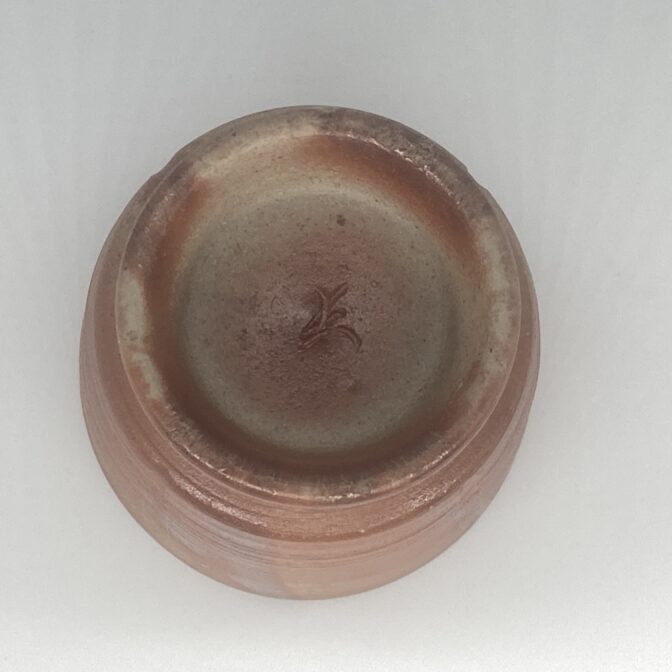 このカップは登窯焼成の緋襷で片側のごまがかかっています。